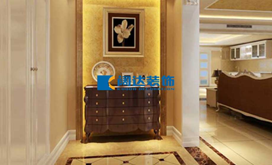 通過與業(yè)主溝通,了解家庭成員夫妻和兒子居住和使用需求,結(jié)合房屋本身的結(jié)構(gòu)特點(diǎn),入戶門正對客廳,客廳私密性不好,門廳要大滿足主人實(shí)用功能,還要體現(xiàn)玄關(guān)功能.客廳與餐廳空間沒有有效劃分,另外廚房中西廚的處理要考慮實(shí)用性和裝飾性。"門廳做了整體衣帽柜,滿足實(shí)用功能,拆除部分隔墻,增大了客廳及門廳間的通道,使整個空間更加開闊。造型啞口的設(shè)計(jì),