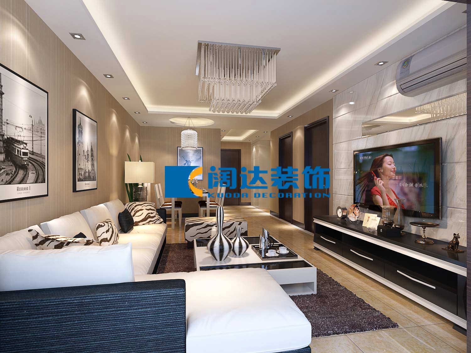 本案戶型設(shè)計(jì)格局很合理,沒有大的變動(dòng),通過造型吊頂和壁紙的相呼應(yīng),整體風(fēng)格統(tǒng)一化,電視背景墻以白色石材為主線貫穿整體,使空間時(shí)尚大方。