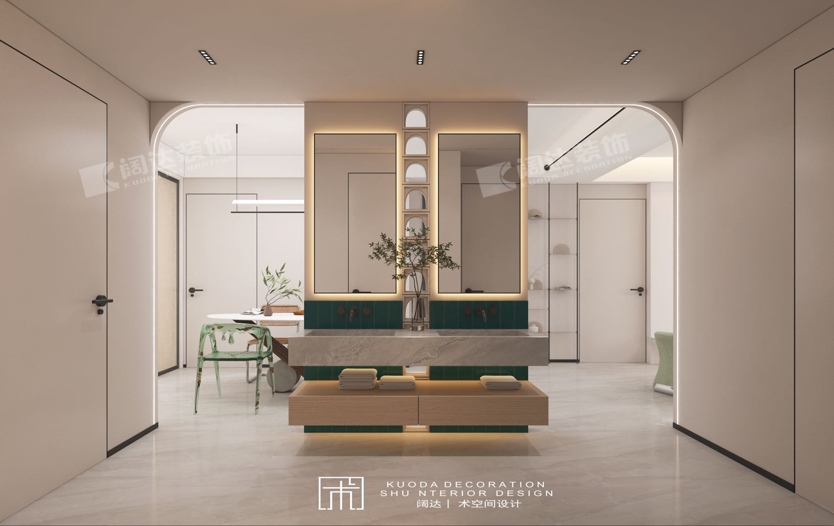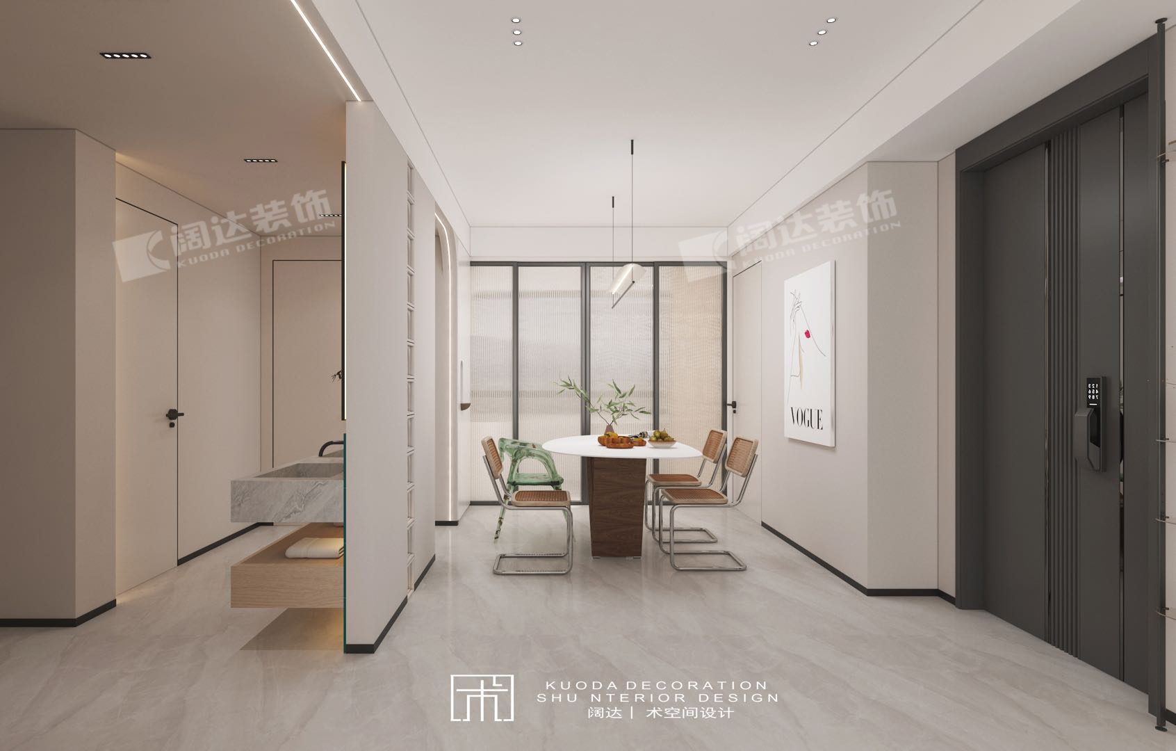 2、拆除廚房門墻,用推拉門將廚房與用餐區(qū)隔斷,增加了餐廚區(qū)空間延展性;衛(wèi)生間重新分配后,洗漱區(qū)隔斷恰好解決了用餐區(qū)正對衛(wèi)生間門的情況