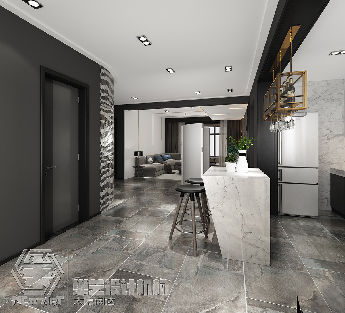 居家場域以沉靜色調為基底,融匯復合媒材,營造自然質樸氛圍;另外亦希望透過重整空間格局,讓室內達到通透敞亮的效果。再將視線移至天花板的特殊結構設計,除劃分不同場域及活動范疇,同時創(chuàng)造了視覺的延展性及豐富性??蛷d與餐廳在此流動空間的設計下,無形間促進家人情感的共享與交流;并于百葉窗開掩時的光暈映照下,灑落一抹靜謐柔美,形塑家的溫馨暖韻。同風格案例:更多>>