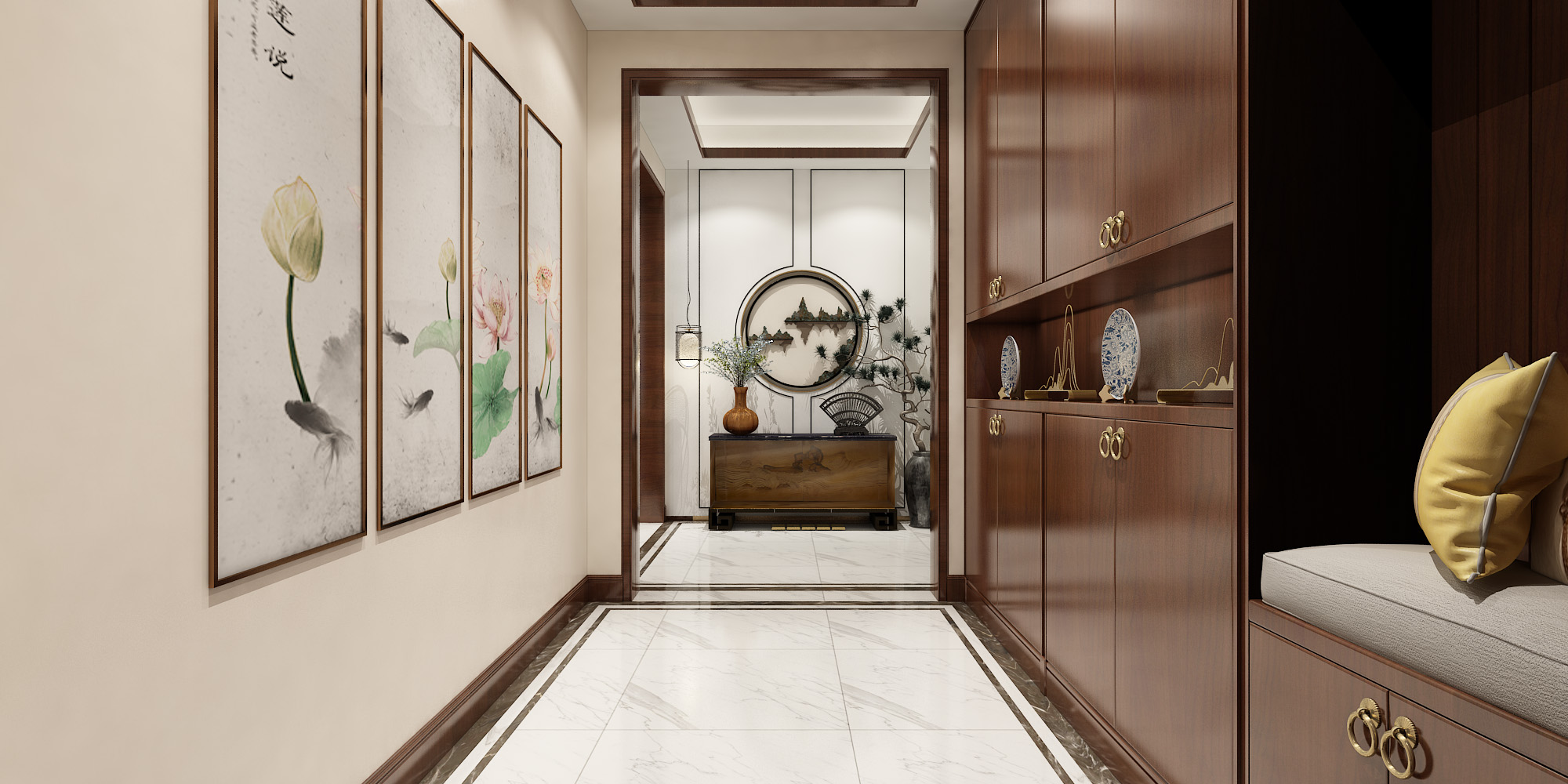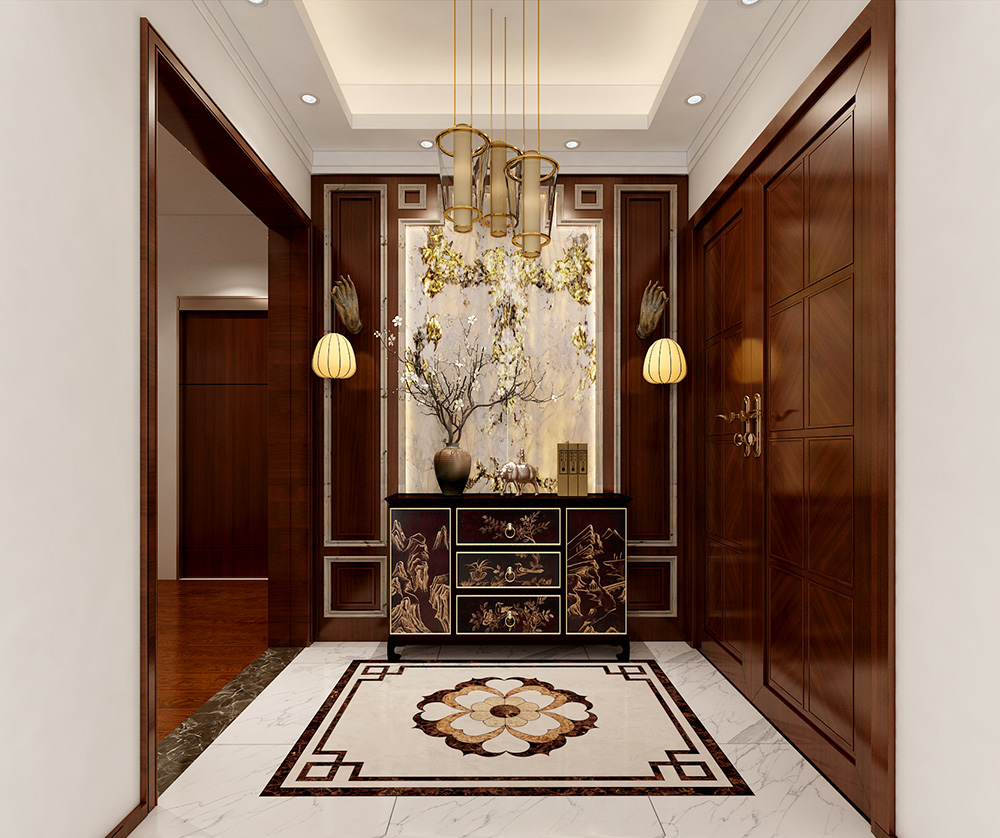 本案的別墅設(shè)計采用了新中式的裝飾風(fēng)格,公共區(qū)域是以實木色調(diào)的家具和具有中國特色元素的裝飾來打造,有一種悠遠(yuǎn)、寧靜的文化韻味。二三層私密空間主要是以現(xiàn)代輕奢的風(fēng)格,簡約的線條結(jié)合色彩更為突出了整個空間的靈動性。同風(fēng)格案例:更多>>
